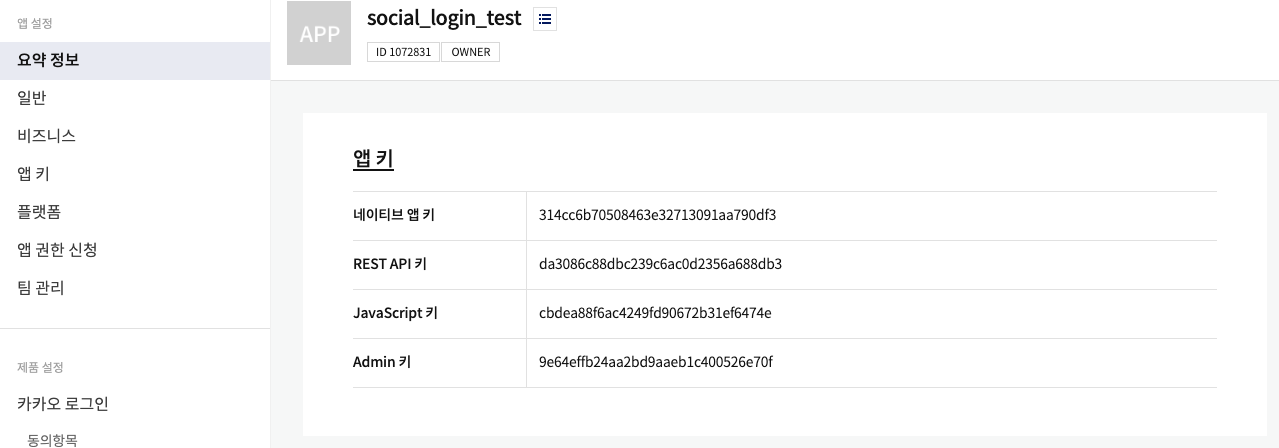 요약 정보에 '앱 키' 라고 있는데 여기선 네이티브 앱 키가 필요하니 기억해두시길 바랍니다.